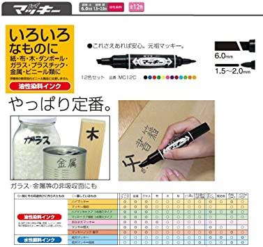 【特長】油性マーカーの定番/1本で太字、細字が書ける!【ペン先】太字・細字両用【線幅】太字:6.0mm/細字1.5~2.0mm【インク】油性染料インク/速乾性・耐水性【用途】紙・布・木・ダンボール・ガラス・プラスチック・金属・ビニールなど【入数】3本入り