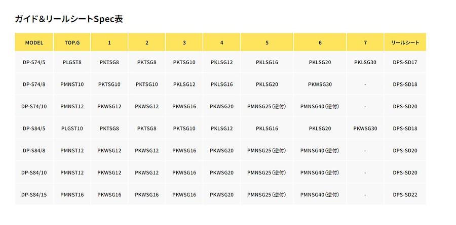 全長: 2.55m (8.4ft) / 継数: 2本 (グリップジョイント) / 仕舞寸法: 約1.88m / 自重: 389g適合ルアーウエイト: ~100g / 適合PEライン: ~8.0号適合ドラグ: MAX 10.0kg / カーボン含有率: 98% (Dual Cross Xラッピング) / スピニングリール対応 / バット側ガイドセッティング一部逆付けありおすすめ対象魚: サワラ, カツオ , ブリ , シイラ , ブリ , ヒラマサ , マグロなど / おすすめ地域: 全国各地【DP-S84/10】……過熱化するヒラマサ&キハダプラッギングゲームの主力アイテム!大型ヒラマサやキハダゲームに対し、オールマイティーなパワー設定とする事で希少なチャンスを掴み取る事が可能なパワーロッド!!