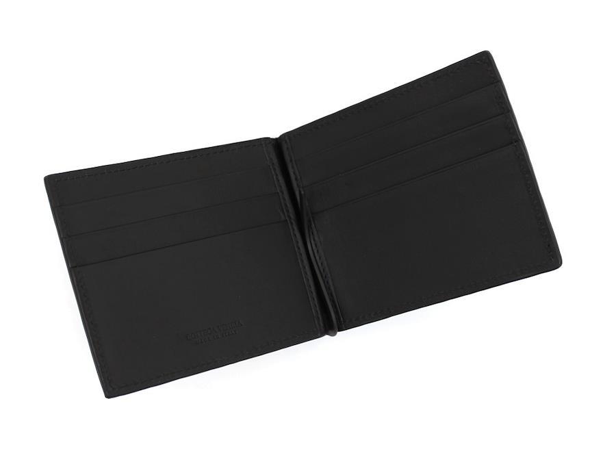 マットカーフを使用し丁寧に編み込まれたイントレチャートに、内側にはボッテガ・ヴェネタのロゴがさりげなくエンボス加工で添えられ、カードスロット6つを備えています。