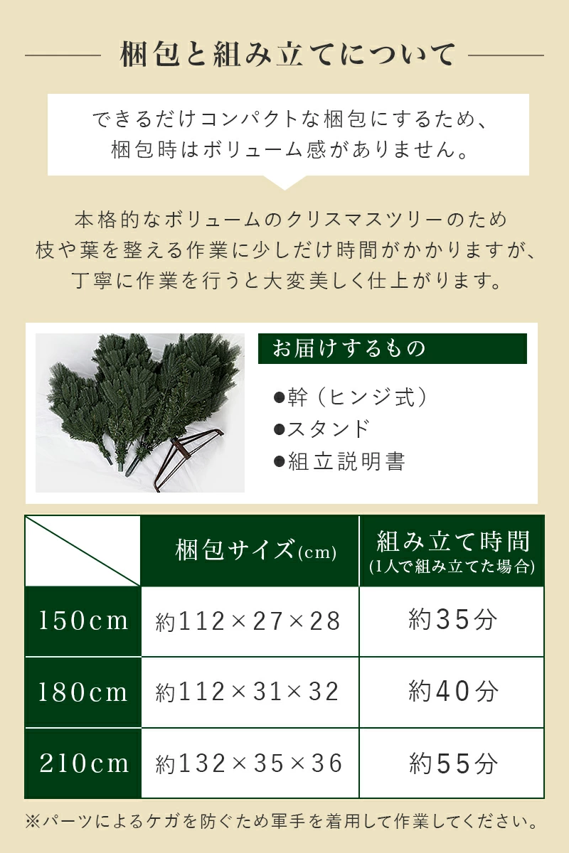 クリスマスツリーの高さ・横幅・重量高さ 約210cm横幅 約130cm重量 約12Kg