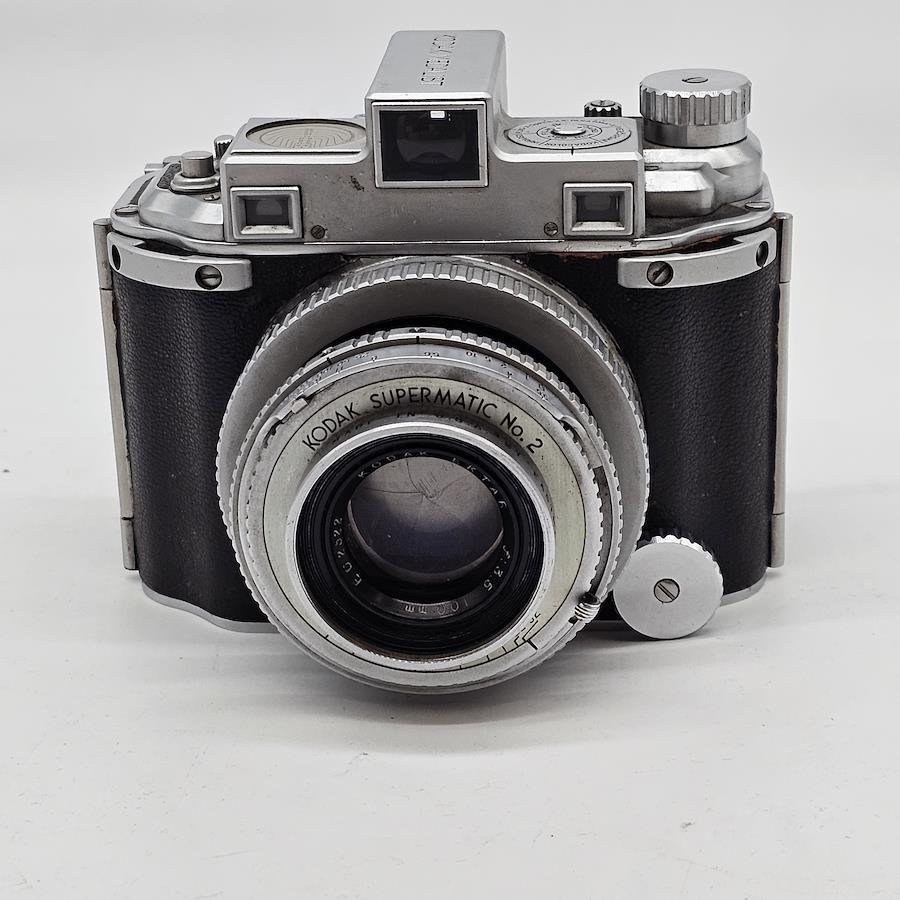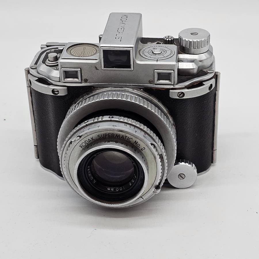 ヴィンテージ感溢れる「Kodak メダリスト」カメラです。レトロなデザインで、コレクションにもおすすめです。フィルムカートリッジがセットされた状態でお届けいたします。