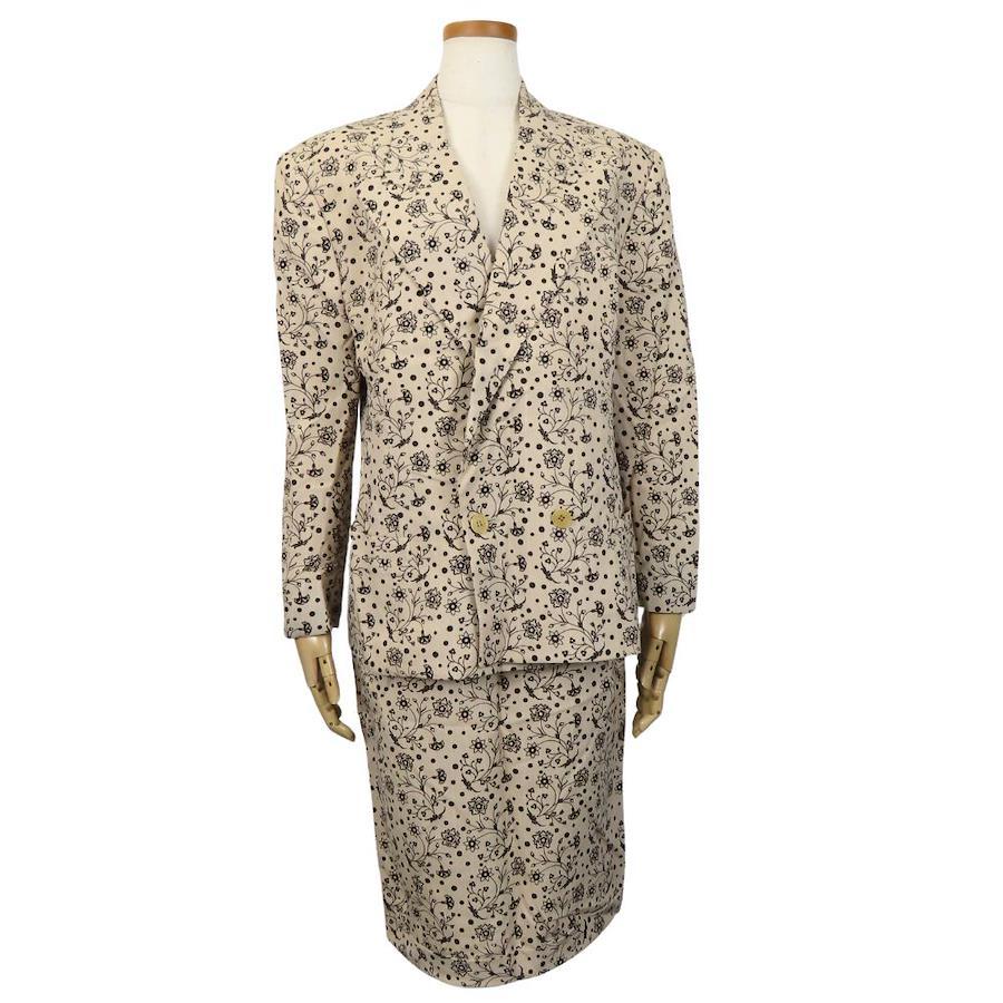 | 品名 | 【中古】 ジャンニ・ヴェルサーチ セットアップ 小花柄 スーツ 40 9 ウール ベージュ ブラック ジャケット スカート アパレル メンズ 男性 Gianni Versace |