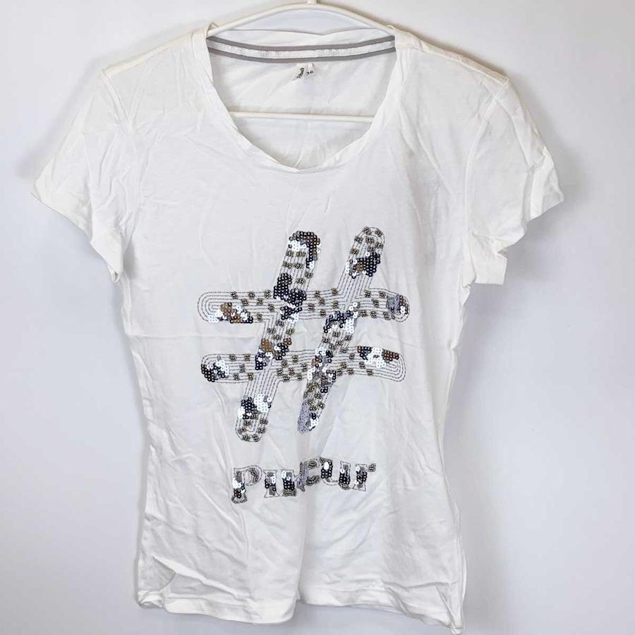 [ブランド] ピカー[タイプ] 半袖Tシャツ[表記サイズ] 36[対象] レディース[カラー] ホワイト[身幅] 約43cm[着丈] 約60cm[状態] 未使用品ですが、肩に汚れがみられます。
