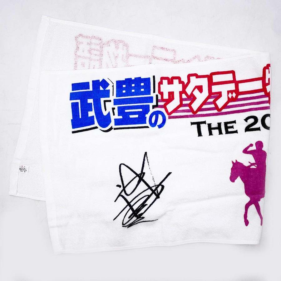 [タイプ] 武豊 タオル スポニチ 武豊のサタデー物語サンデー物語 20周年記念 プリントサイン 競馬 JRA[サイズ] タオル 約33cm×約85cm[状態] 未使用品(箱に多少の傷みがあり、タオルにわずかに小さな汚れがみられます。)