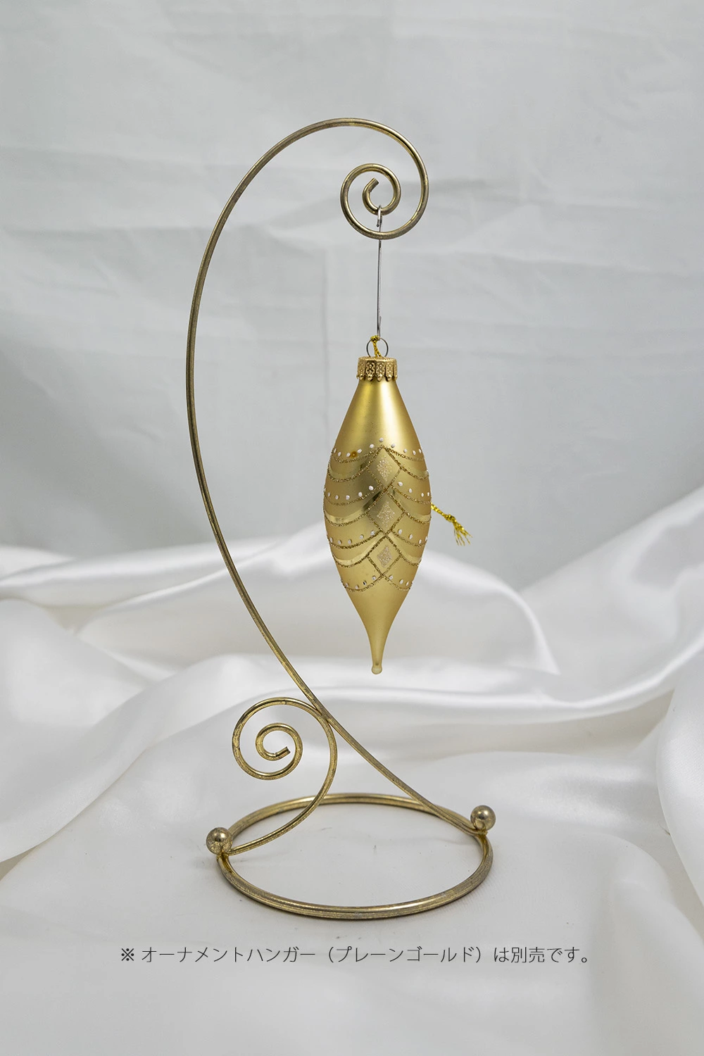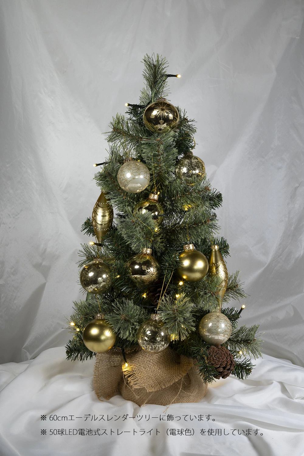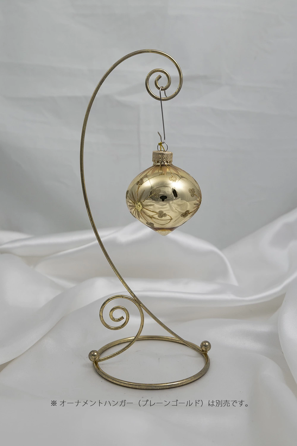 グラスボールオーナメンントセット(カームゴールド)☆綺麗なフォルムとデザイン細長いツララ型、水をモチーフにしたドロップ型、そして綺麗なデザインを施したボール型。それらすべて本物のガラスで作られています。グラスボールの良さは、プラスチック製に比べ、そこはかとない上品さがあります。そこはかとない。つまり、何となくとしか言い表せないのがもどかしいのですが、要は質感でしょうか。写真では伝わりにくいのが残念です。