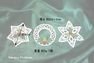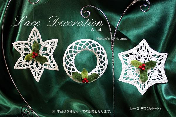 レースを編み、その形のまま飾りたいので樹脂で固めました。なので、型崩れがほとんどありません。基本的に白なので、ツリーに栄え、しかもかわいい印象を与えてくれます。