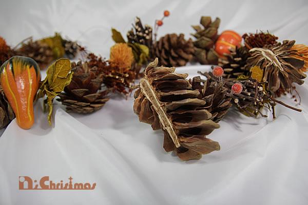 置物やリースはそれだけで簡単に季節をイメージさせてくれますが、それだけでは物足りない時にプラスアルファするだけの便利グッズです。そのまま置いたり、壁に吊るしたり、窓枠に飾ったり自由自在です。このガーランドは秋の定番アイテムのかぼちゃや松ぼっくりをまとめたもので、ハロウィンの時だけでなく、オータムシーズンずっと飾っていただけます。
