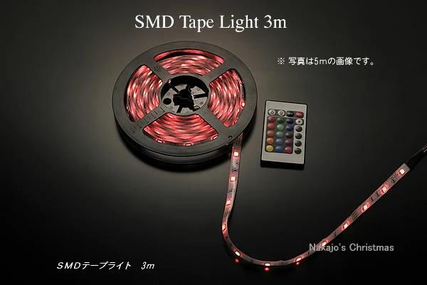 従来の電球型のLEDではなく、SMD(SurfaceMountDevice=表面実装型)にする事により、今までにない形状のイルミネーションの登場です。チューブライトなどとは違い、平面になっているので家や窓・棚などをより簡単にデコレーションすることができます。また、テープライトの受信機に向けて無線のリモコンボタンを押すことで、全16色のお好きな色に変えることができ、光の強さを変えたり、色の変化も選ぶことができます。まさに画期的なイルミネーションの誕生です。今年のイルミネーションのトレンドはこれで決まり!