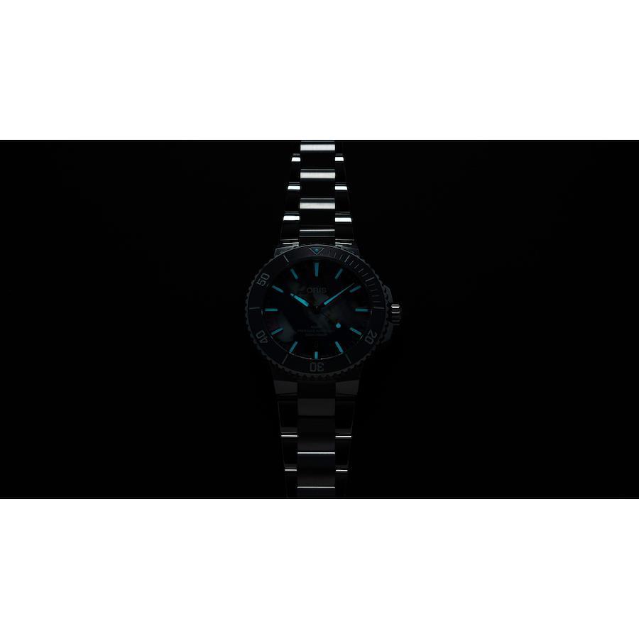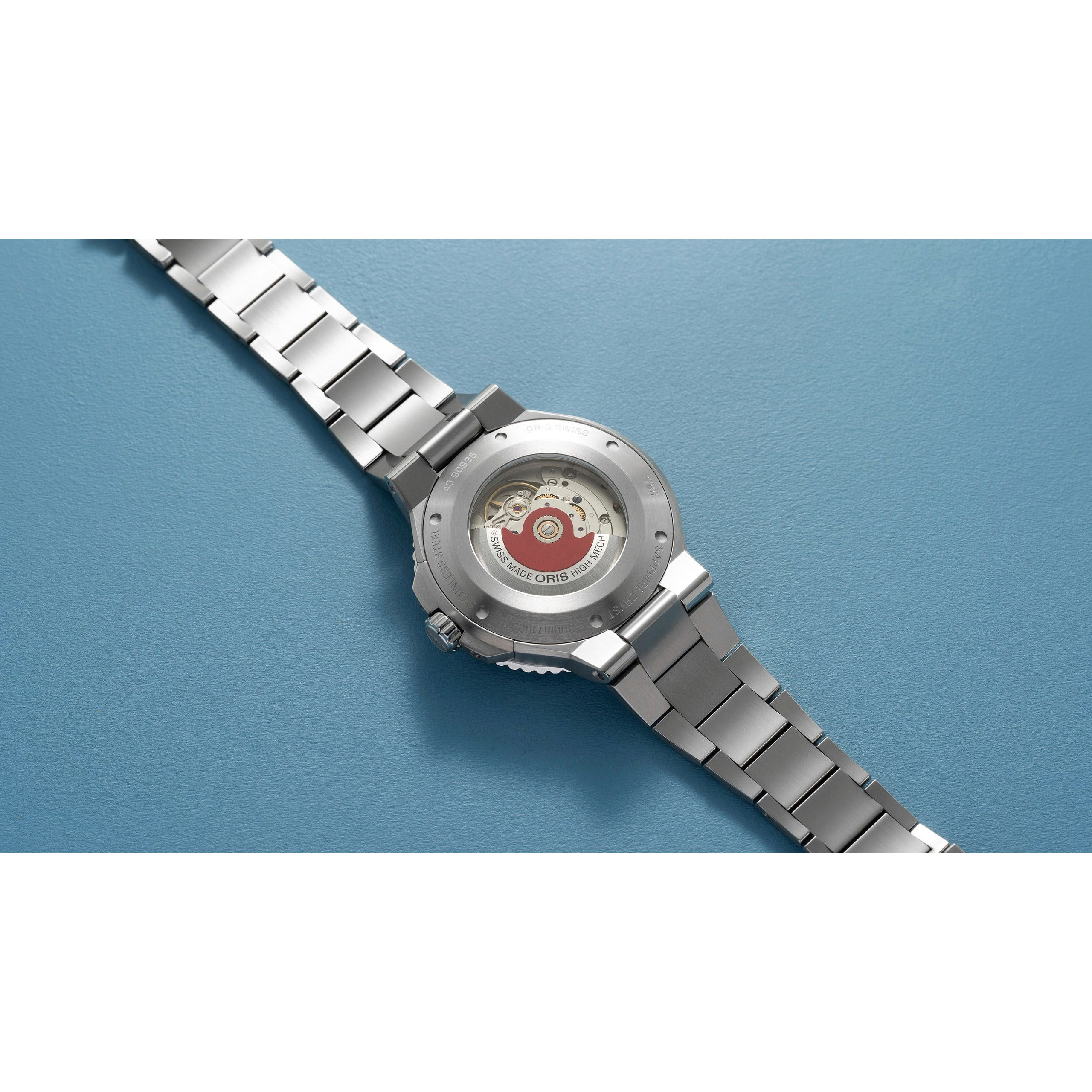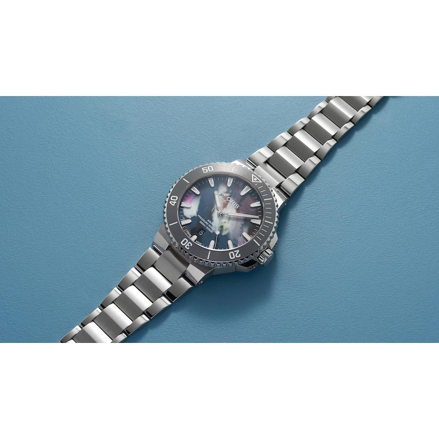 ORISのデザイナーにより全てのパーツにおいてディテールの見直しが行われ、細部へのこだわりによって刷新された結果、これまでのアクイスに比べてより洗練された、高級感の感じられるダイバーズウォッチに仕上がっています。微細なアップデートを重ねた結果、新アクイスシリーズは見た目も着け心地も大きく向上されました。アップサイクルはPET樹脂のリサイクルプロセスで無作為な模様が生成されるため、1つとして同じ文字盤はありません。つまり唯一無二ということです。全サイズとも限定生産ではなく、需要がある限り作り続けるつもりです。私たちの願いは、お客様に「アクイスデイト アップサイクル」を選んでいただき、世界の海洋プラスチックの危機を減らすための日々の活動に参加していただくことです。The Seas of Time ダイバーの意見や広範囲に及ぶ研究の結果、誕生したアクイスは、高い機能性だけでなく、デザインにおいても妥協のないダイバーズ。タウンユースでも、ダイビングでも快適な使用感で活躍してくれます。