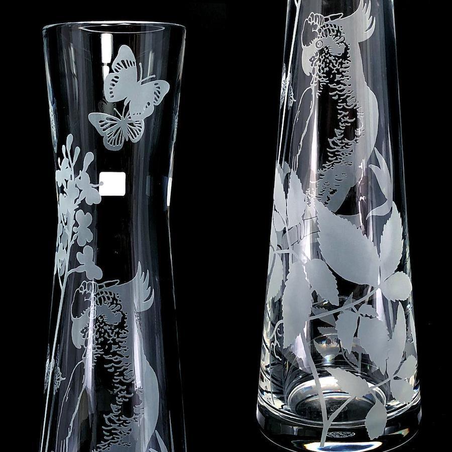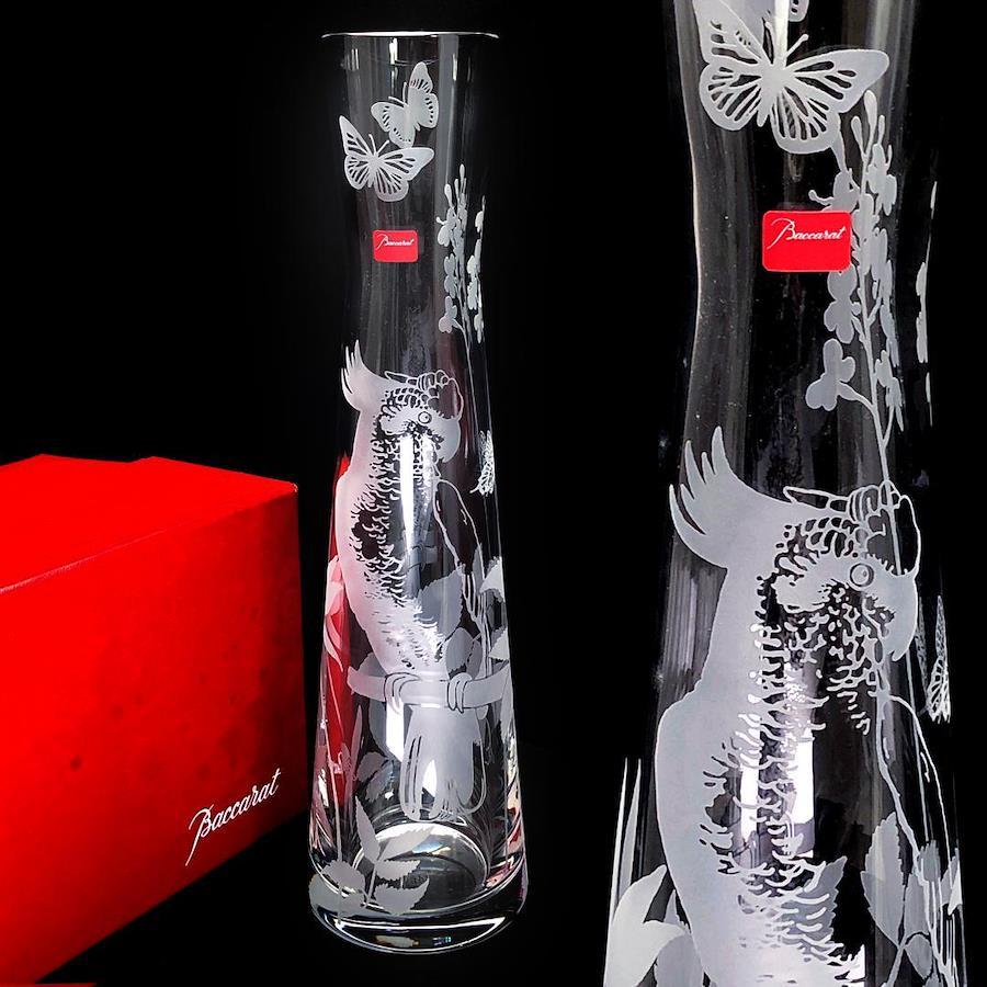 ◎クリスタルガラスが美しいバカラグラス◎オウムとバタフライ柄でエッチングされた大型花瓶