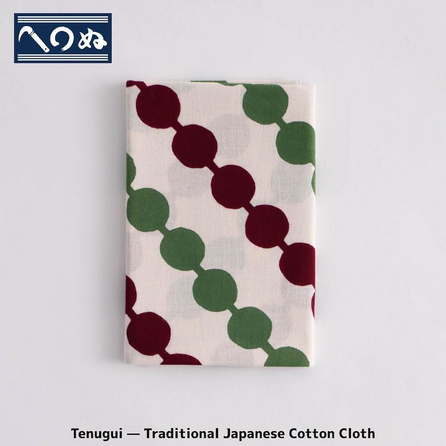 あんこや抹茶の素朴な甘みを連想させる意匠は、甘味屋さんの包み紙のような親しみと風情を感じさせます。お茶の時間や食後のひとときに、そっと寄り添うてぬぐいです。
