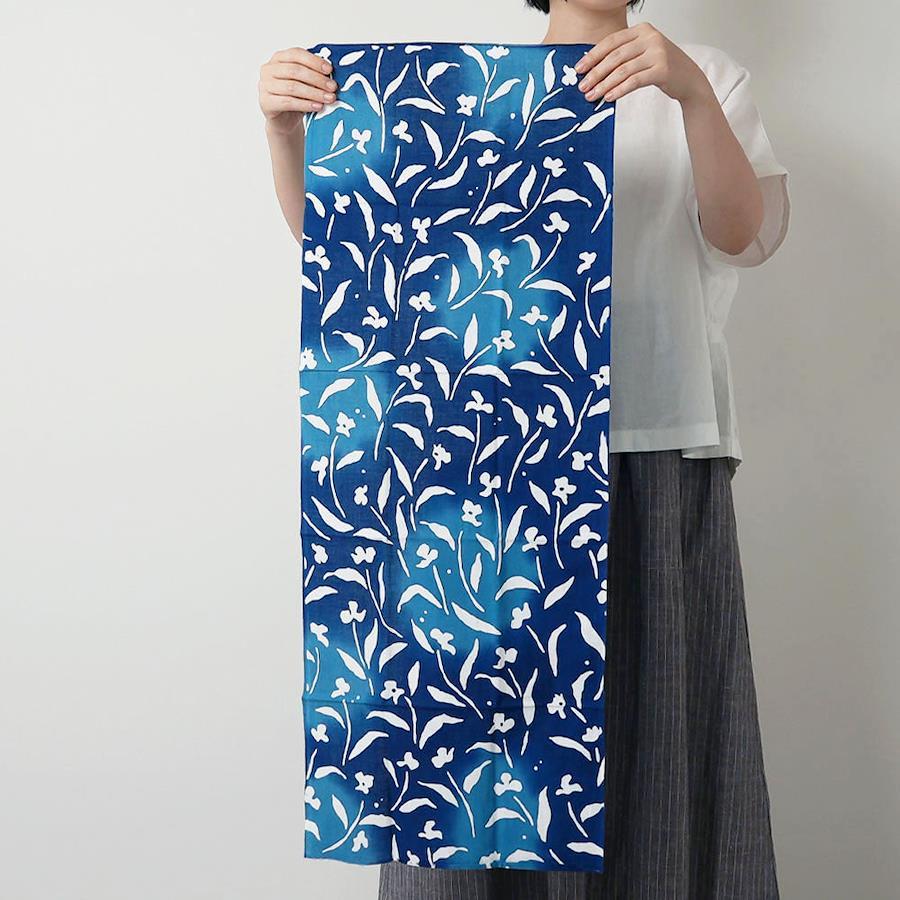 線描で散りばめた露草の繊細な模様が、暑さの中にひとときの涼をもたらす手ぬぐい。