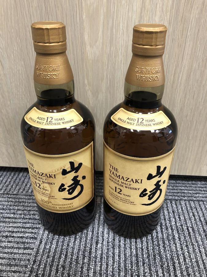 サントリーウイスキー100周年記念蒸溜所ラベルサントリーシングルモルトウイスキー山崎12年 700ml 2本セット未開封です。