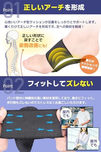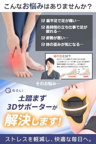 土踏まずアーチサポータ【計算されたアーチで快適に足裏を保護します♪】現役整体師監修の元、数多くの聞き取りを実施し、様々な状況を想定して商品開発をいたしました。 【QOLiでは返品保証付き!】初期不良やサイズが合わない場合は、ご購入から30日以内であれば交換または返品が可能です。その他ご用件もお気軽にご相談ください。 ?土踏まずアーチサポーター?【計算されたアーチで快適に足裏を保護します♪】現役整体師監修の元、数多くの聞き取りを実施し、様々な状況を想定して商品開発をいたしました。 【①高いクッション性】立ち仕事や運動で溜まった疲労や痛みにも優しくアプローチ致します。 【②伸縮性の良さ】強力スパンデックス素材を配合、足裏の形状に沿って密着します。 【③防臭仕様】長くお使い頂く場面が多くなることを想定して加工処理いたしました。 【④正しい姿勢】足裏が整うことでスタイルにも良い影響がございます。 【⑤水洗い可能】毎日のご使用や夏場でも安心してお使いいただけます。