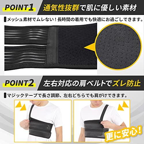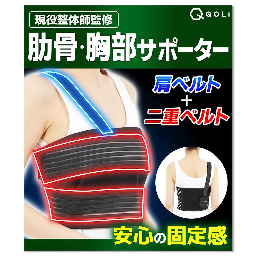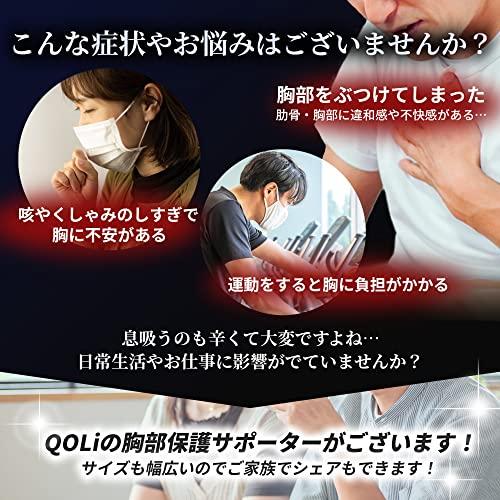 【QOLiでは返品保証付き!】初期不良やサイズが合わない場合は、ご購入から30日以内であれば交換または返品が可能です。その他ご用件もお気軽にご相談ください。QOLiは商標登録第6538688で保護されているブランドです。別店舗により販売されていることがありますが、ご購入の際は十分注意をしてください。 ★【肋骨保護サポーター】★?本格的な保護を気軽に実現?目指したのは誰もがジャストフィットする肋骨・胸部サポーターです。 ?【肩ベルト】QOLiの肋骨保護サポーターはマジックテープで取り外しができ、左右どちらの肩にも装着できます。また外して肋骨サポーター単品で使用もできます。 ?【通気性抜群】メッシュ生地を採用し、通気性を向上させたので長時間の着用も苦ではありません。 ? 【二重ベルト】 胸部の凹凸に対応できるようにベルトを2分割し、ジャストフィットするようにしました。 ?【軽量・コンパクト設計】重さわずか150g!持ち運びにもとても便利です。 ?【耐久性抜群】丁寧な縫製と丈夫な素材を採用し、永くご愛用できるように心がけました。