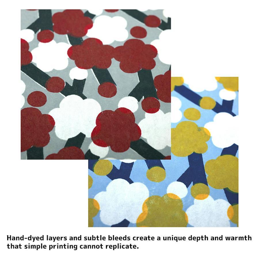 本商品に使用している和紙は、京都の職人が一枚ずつ手染めで仕上げています。そのため、まれに白い点やわずかな色ムラが見られることがございます。