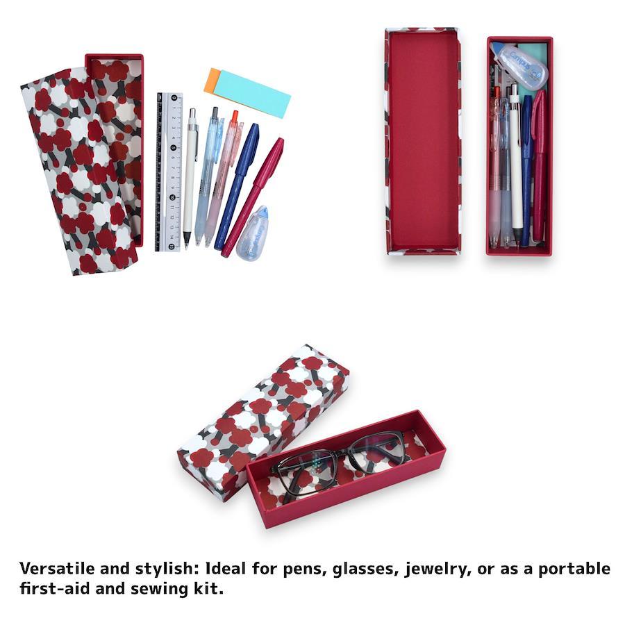 ✔ こだわりの職人技:京都の貼り箱専門工場で一点ずつ丁寧に仕上げ✔ モダンな伝統文様:6種類の文様×2色展開で選ぶ楽しさ✔ 実用性抜群:ペンケース・眼鏡ケース・小物入れとして活躍✔ 上質な贈り物にも:特別な想いを伝える「幸せの文様」