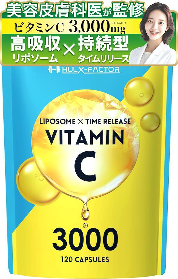 【飲む美容点滴】高濃度 リポソームビタミンC サプリ 3000mg配合 ハルクファクター 抗酸化マルチサプリメント 持続型 タイムリリース ビタミンC 医師監修 日本製 120粒
