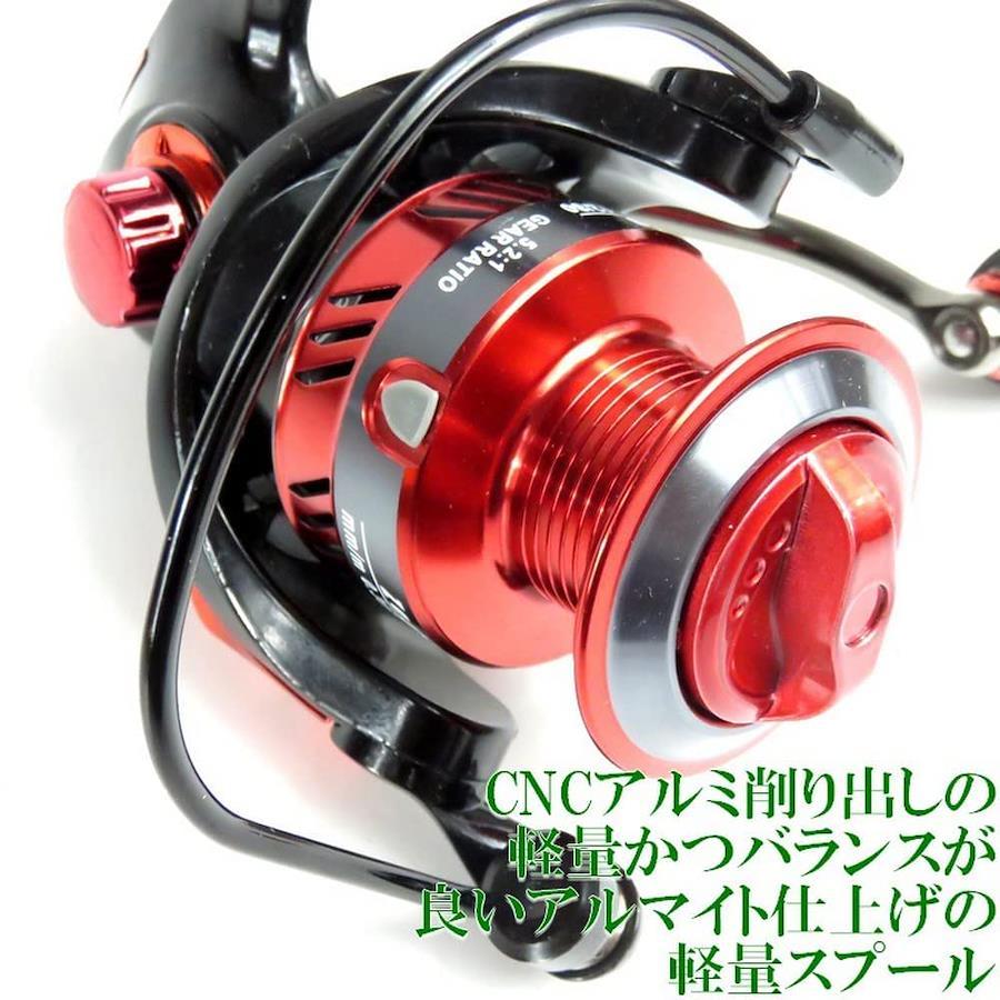 CNCアルミ削り出しレッドアルマイト仕上げの 軽量かつ強靭なスプールを採用!3ボールベアリング搭載の本格派!ローターバランス済みでブレが少なく高速リトリーブも滑らか!長時間の釣行でも疲れにくいパワーEVA製ハンドルグリップ装備!#1000-0.20mm240m、0.25mm190m、0.30mm130m