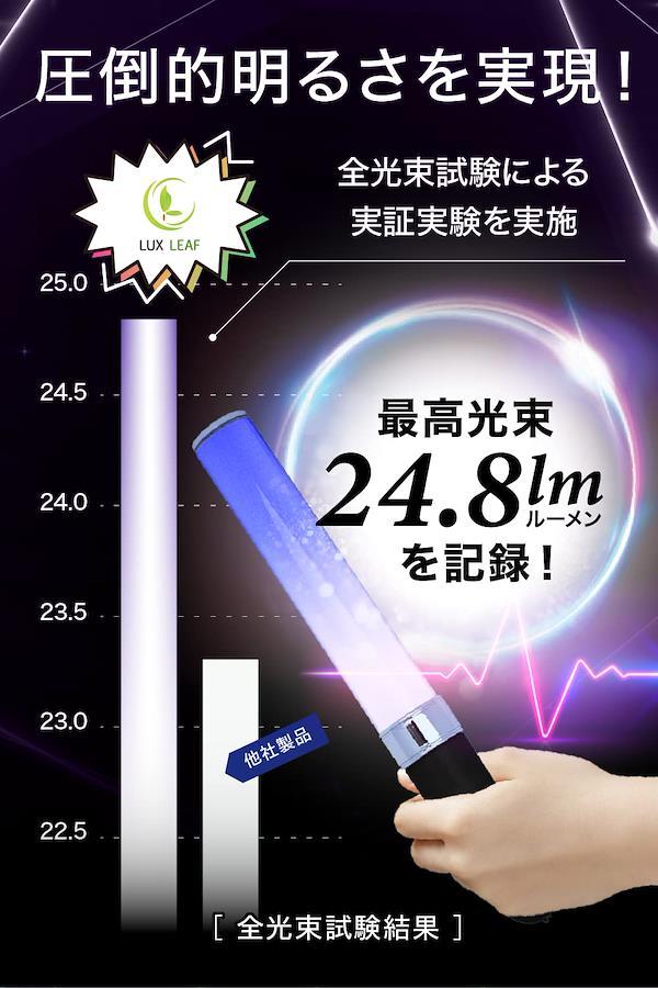 【音楽・ライブ情報専門誌 掲載モデル】音楽・ライブ情報専門誌「音楽と人」掲載モデルのペンライトです。【最高光束24.8lmを記録!】大阪産業技術研究所にて全光束試験を実施。最高光束24.8lmを記録しました。圧倒的に明るい輝きを放つペンライトです。【超簡単操作】操作ボタンは2つのみ。auto点灯モードも手動点灯モードもらくらく切替可能で、届いたその日からすぐにお使いいただけます。【充電不要の乾電池仕様】単四電池3本で使用できるため、いつでも電池交換いただくことにより、すぐにご使用できます。【製品仕様】サイズ:全長28cm、発光部16cm、直径3.2cm、電源種別:単4電池*3本、材質:ABS樹脂、本体重量:68g【免責事項】メーカーによる商品リニューアルに伴いパッケージ(内容量も含む)変更が行われた場合、新パッケージでお届け致します事ご了承願います。