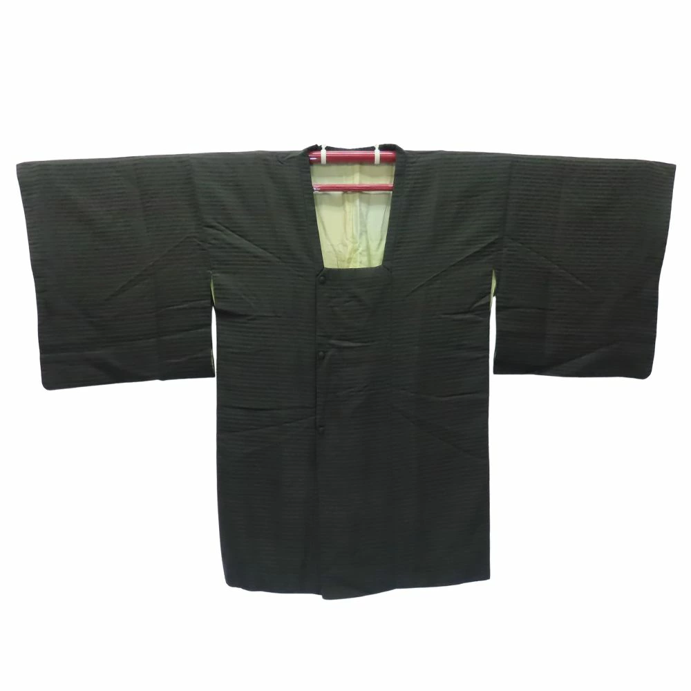| 品名 | 【中古】 道行・道中 道行コート 正絹 ダークグリーン モダン 縞 レディース 女性 |