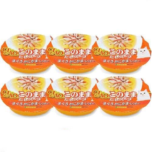 焼津産まぐろだしは風味豊かに仕上がりました。猫ちゃんの好きなかにかまとしらすをトッピング。緑茶消臭成分配合。