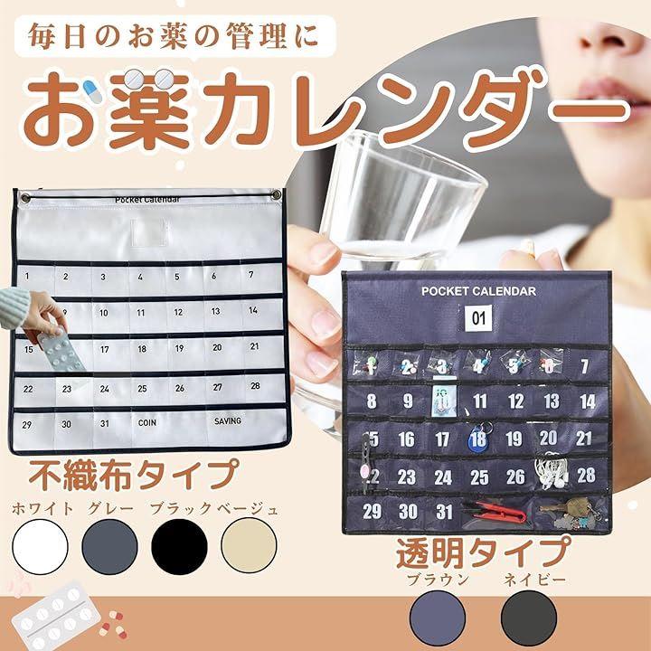 「お薬カレンダー」この壁掛けカレンダーは、1か月の予定を一目で把握できるように設計されており、日付ごとにポケットが付いているため、お薬の管理に最適です。