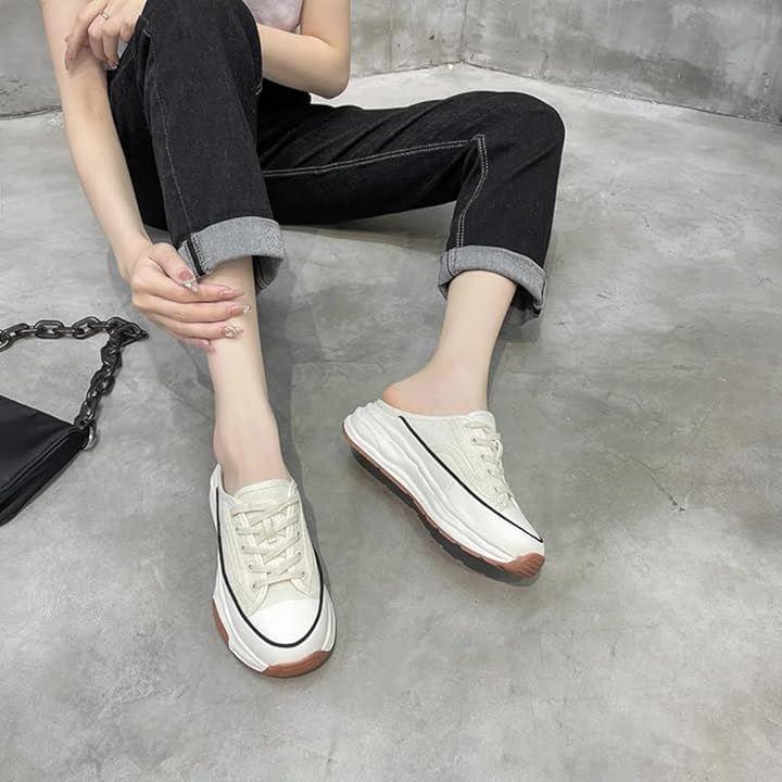 このかかとなしスニーカーは、日常のさまざまなシーンで活躍する、快適でスタイリッシュなレディースシューズです。