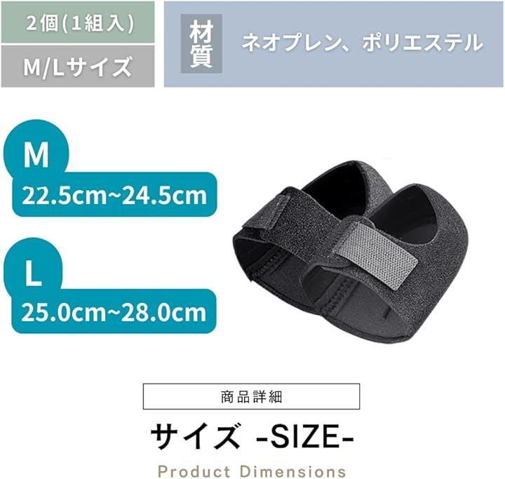 「商品内容」踵パッド:2個(1組) 適合サイズ:M/22.5cm~24.5cm、L/25cm~28cm 主な材質:ネオプレン *サイズ詳細は商品画像をご確認ください。