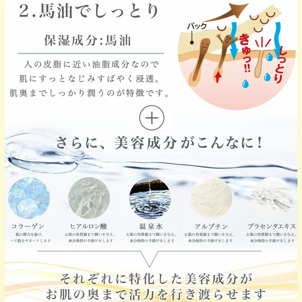 【成分】水、ポリビニルアルコール、エタノール、BG、フェノキシエタノール、馬油、加水分解コラーゲン、加水分解ヒアルロン酸、温泉水、アルブチン、プラセンタエキス、(アクリレーツ/メタクリル酸ステアレス‐20)コポリマー、メチルパラベン、PEG-60水添ヒマシ油、エチドロン酸4Na、レモングラス油、水酸化Na、ラウリル硫酸Na、黄4、グリセリン、PG、プロテアーゼ、塩化Na