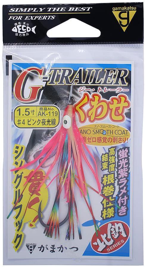 「G-TRAILER くわせ」シリーズが充実のラインナップ!●違和感なく喰い込ませる「喰わせ性能」を追求!●強力な結節力を生み出す根巻仕様!●フラッシャースカートでアピール度抜群!●蛍光紫ラメ付きでさらに注目度アップ!●状況に応じて選べるカラー、サイズラインナップ!