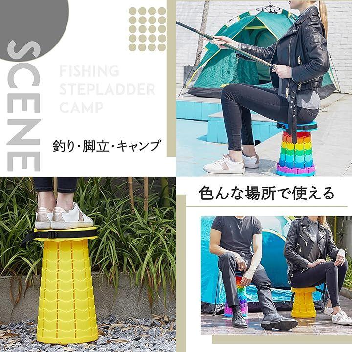 「高さ調節で快適な座り心地」この折りたたみスツールは、簡単に高さを調節できるため、子供から大人まで誰でも快適に使用できます。