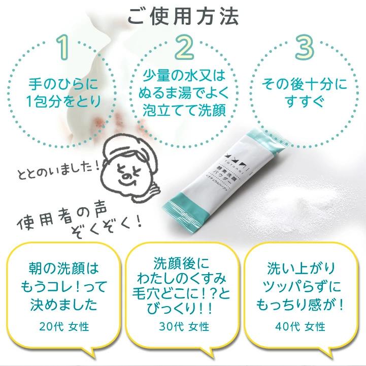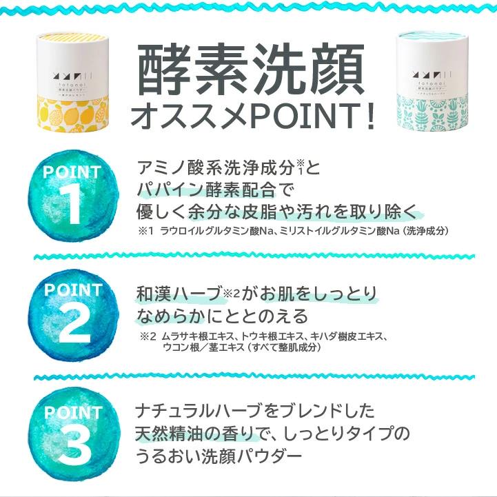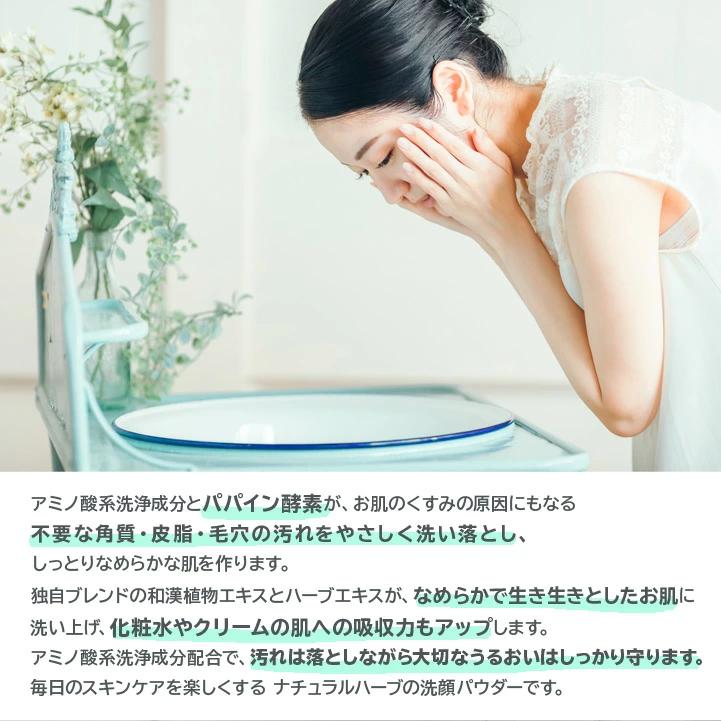 【こだわりポイント】酵素洗顔で、くすみ※1のない本来の素肌へ。やさしく落としてしっとりした洗い上がりの洗顔パウダー。和漢ハーブと酵素※2のチカラで毛穴に残った汚れや古い角質を取り除き、しっとりなめらかなお肌に導きます。軽いメイクなら落とせます。ポイントメイクは専用のクレンジングをお使いください。お肌に優しい無添加(合成香料、保存料、着色料)で、お肌ととのう。※1 古い角質層が厚くなることで、肌がくすんで見える状態※2 パパイン(整肌成分)【こんな方におすすめ】毛穴汚れが気になる方 角栓除去したい方 黒ずみが気になる方乾燥肌 脂性肌 混合肌 ツヤ肌 肌荒れ ニキビ にきび