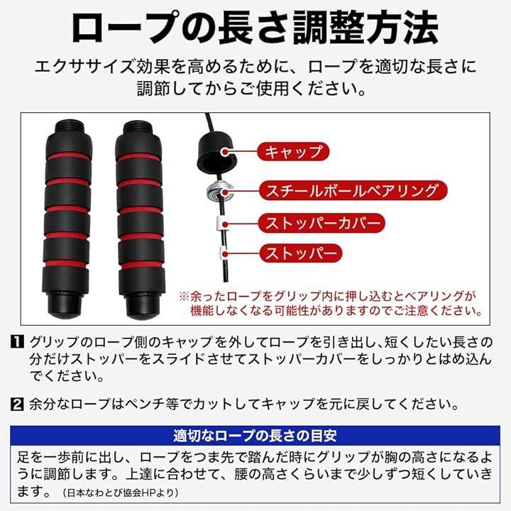ロープの長さを簡単に調節することができるので、大人からジュニアまで幅広くご利用いただける縄跳びです。