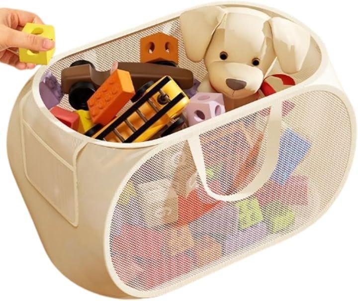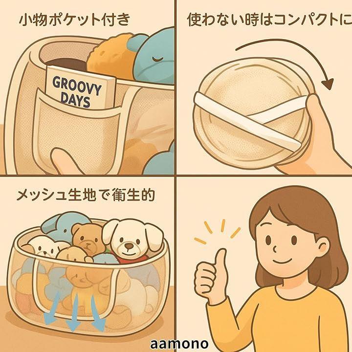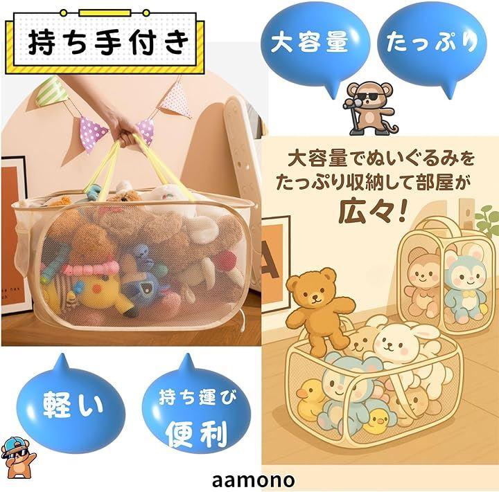 サイズ(広げた):幅58x奥行35x高さ35cm/重さ:230g/容量:約67L/素材:ナイロンメッシュ・鉄線ワイヤー/カラー:ベージュ