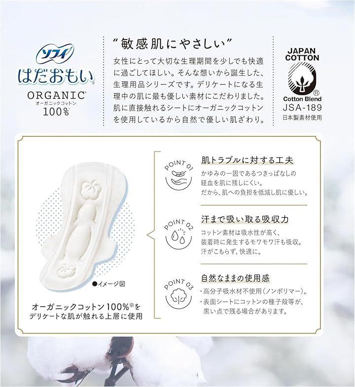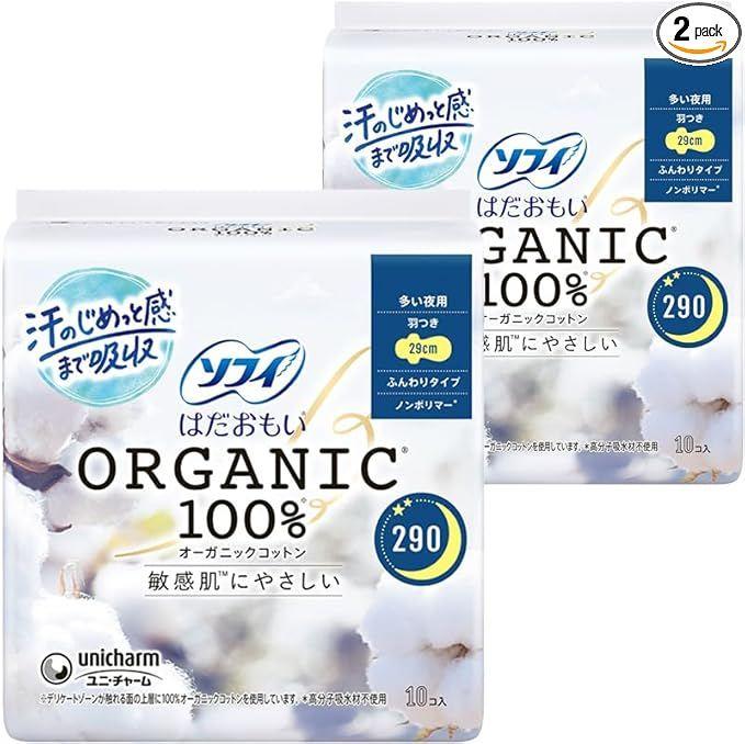 はだおもい オーガニックコットン 多い夜用 290 羽つき 29cm 10枚 x2個セット(合計20枚)