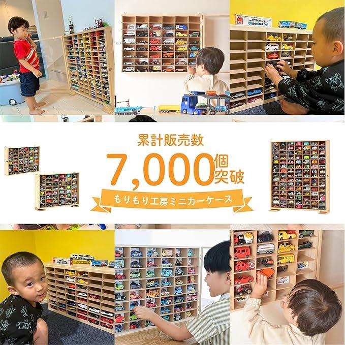 ■商品名もりもり工房 ミニカーケース (15×4マス / 最大120台収納可能 / 木製/ロングミニカー) ミニカー 収納 コレクションケース (高さ約75cm 幅約68cm 奥行き約13cm) リンネル掲載 トミカ