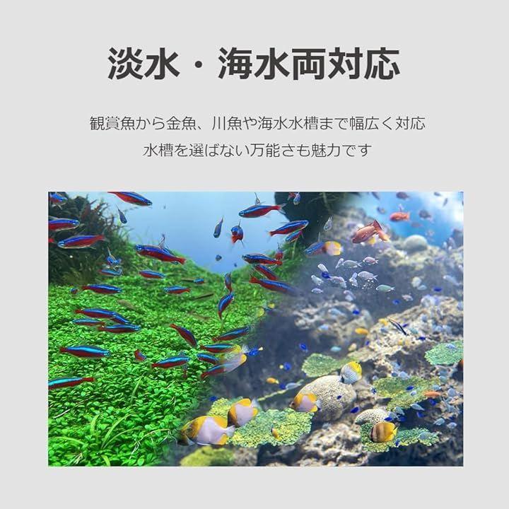 「淡水・海水両対応」観賞魚から金魚、川魚や海水水槽まで幅広く対応。