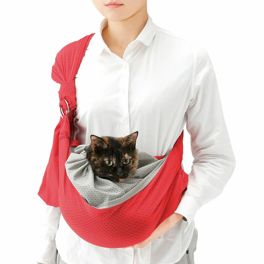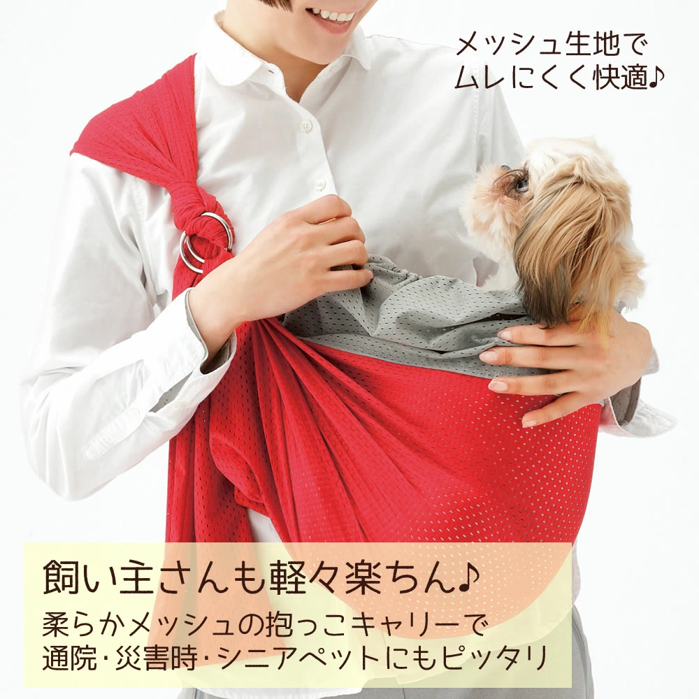 柔らかメッシュの抱っこキャリー通院・災害時・シニアペットにもピッタリ持ち運びコンパクト肩ひも長さ調整可能
