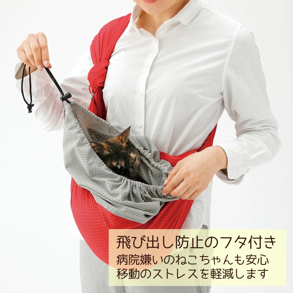 窮屈感のないメッシュ素材、抱っこをすれば両手も使える病院嫌いのペットにもぴったり、移動のストレスを軽減さ飛び出し防止のフタ付きなので安心コンパクトに持ち運べるのでお散歩の途中の抱っこにも。
