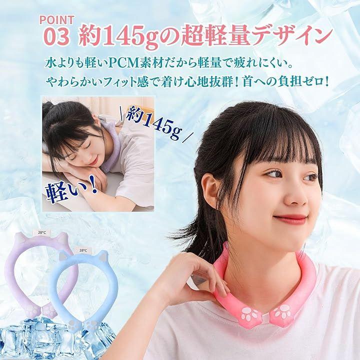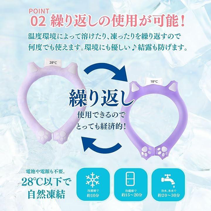 「暑さ対策・熱中症対策に」可愛い猫ちゃんデザインのアイスネックリングです。28度以下の環境で自然凍結し、優しい冷たさで冷えすぎによる低体温症の心配もない体に優しいネッククーラーです。