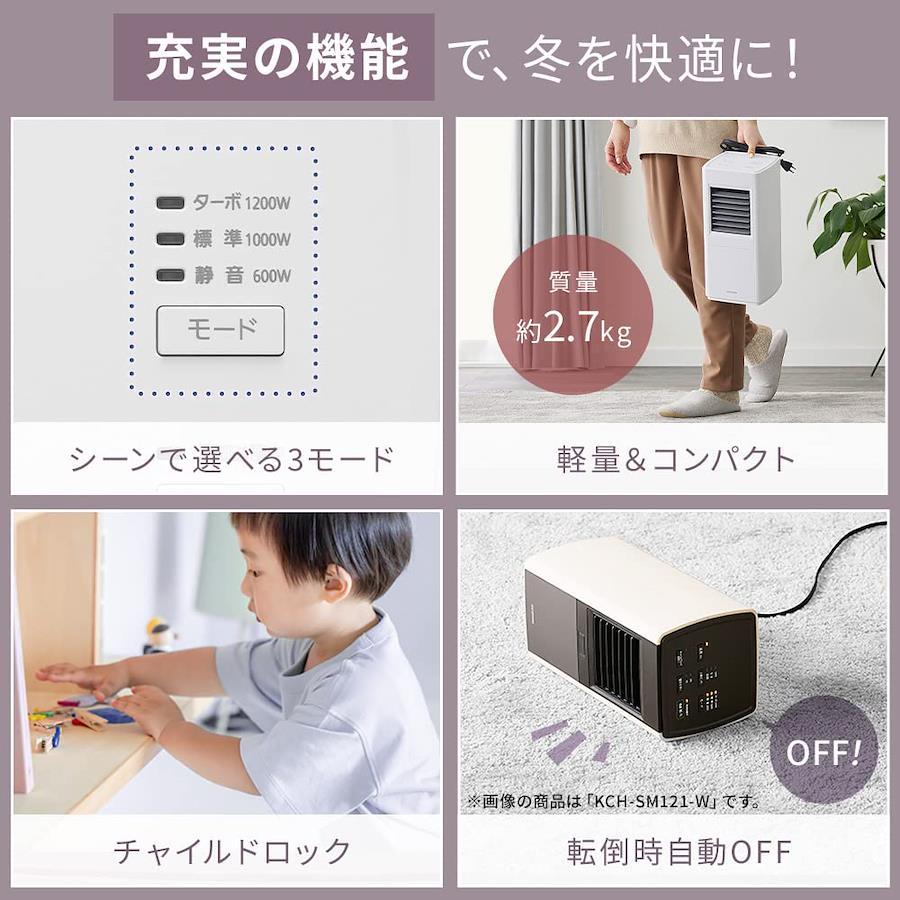 大風量セラミックファンヒータースリム[ACH-S12A]スリムで大風量、コンパクトで持ち運びも簡単。いつでもどこでもあたたかく快適なおうち時間を。