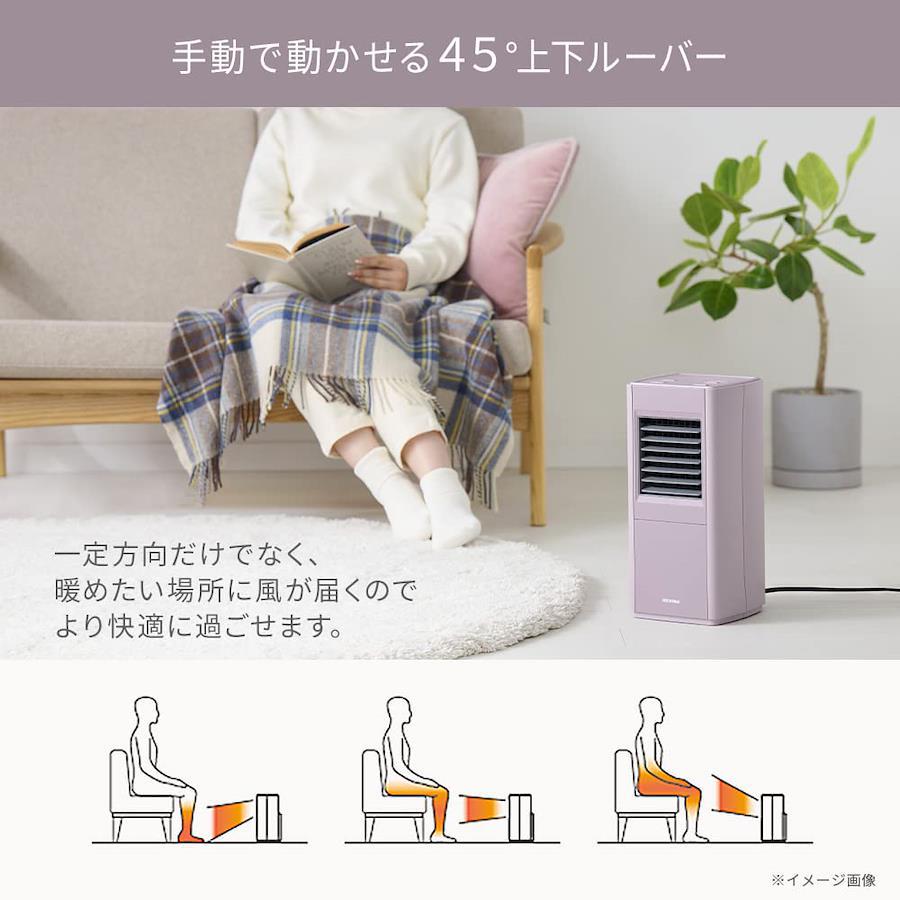 【コンパクト設計&大風量】大風量のパワーは変わらず横幅スリム“幅約17.5cm”。さらに手動で動かせる45°上下ルーバーで、暖めたい場所に風をお届け。暖める位置をシーンで選べます。