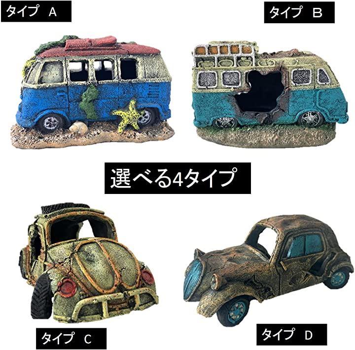 ・車がイラストから飛び出てきたようなポップで可愛いイメージした水槽オブェです