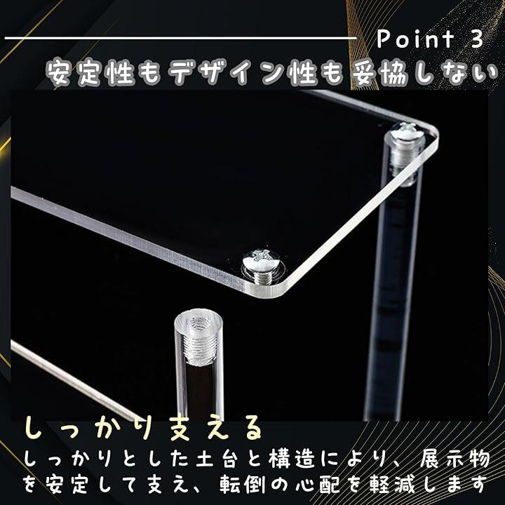 「自由に飾れるデザイン」 このアクリルスタンドは、お気に入りのフィギュアやコレクションを美しく展示するための理想的なアイテムです。