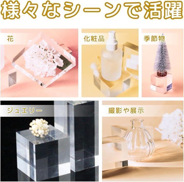高い透明度と耐久性を兼ね備えたこのアクリルブロックで、どんなアイテムも美しく引き立てましょう。