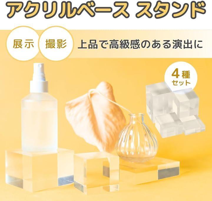 透明度の高いアクリルベース4種セット 透明度抜群のアクリルベース4種セットで、展示アイテムを引き立てます。