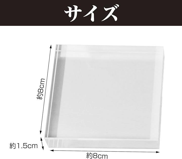 アクリル台座は、縦横8センチ、1.5センチの適度な厚みと使いやすいサイズ感。