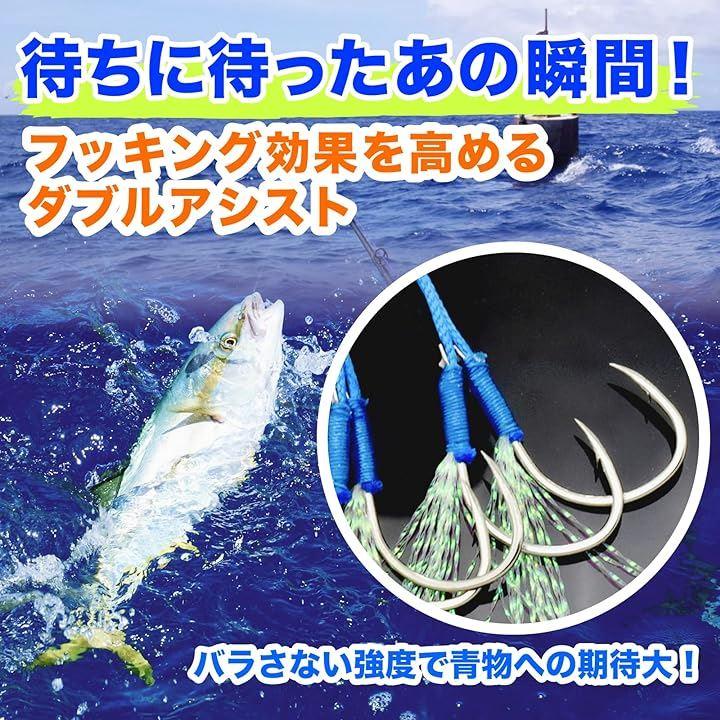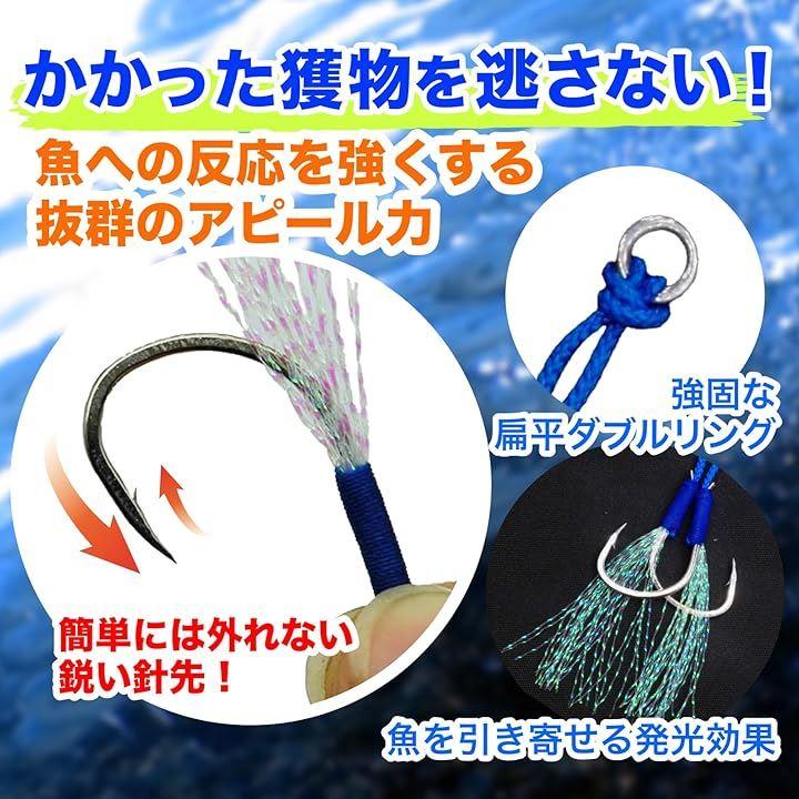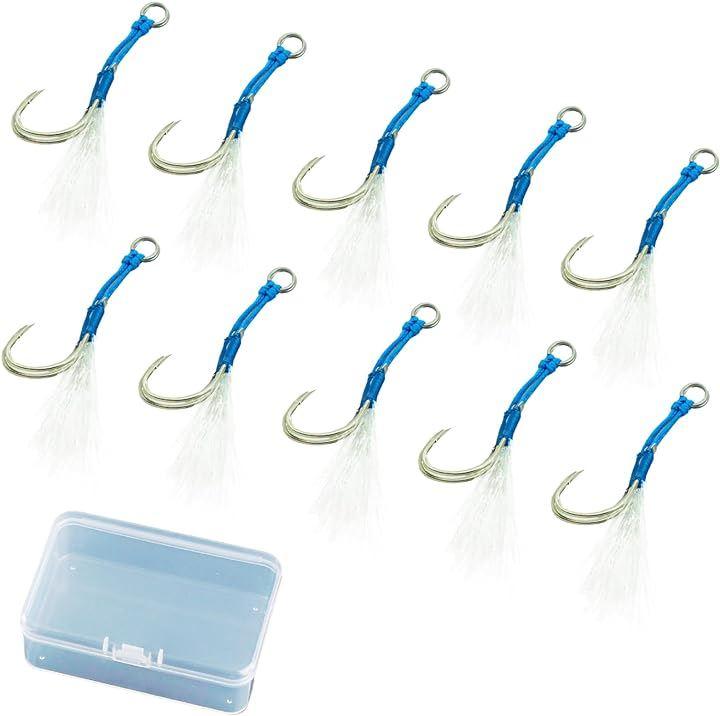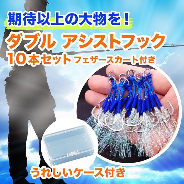 ・ジギング用 フェザー スカート(ティンセル)付き ダブル アシストフック 10本セット(ケース付)です。