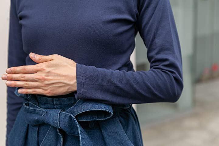伸縮性が良く、ボディラインを美しく見せてくれます・・身体のラインを強調しすぎない、絶妙ちょいゆるシルエットなのもポイント・・ワイドパンツ、袖コンシャツ等トレンドのボリュームアイテムと好相性・・1枚で、インナーとして、重ね着を楽しんで、と使い方色々・